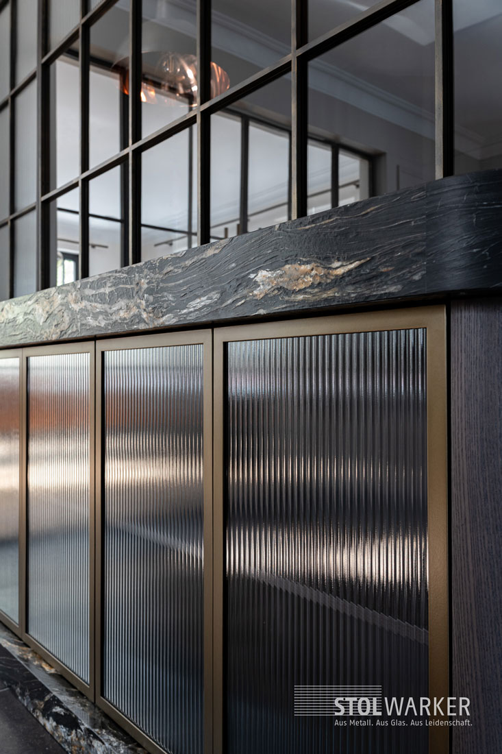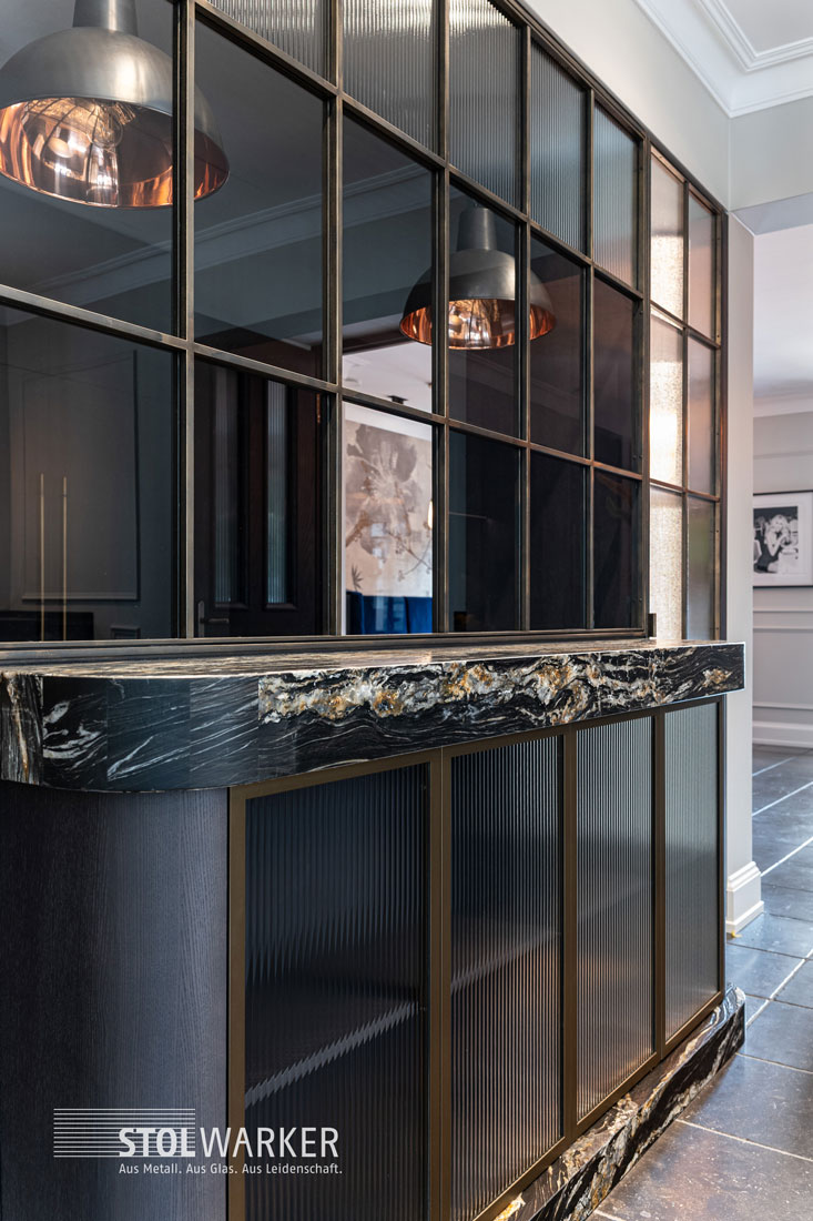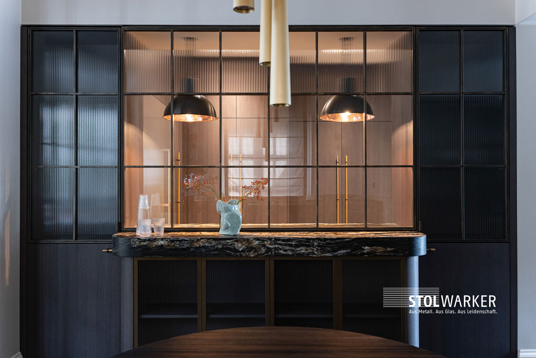 In Zusammenarbeit mit bulthaup Winterhude realisierten wir eine bewegliche Trennwand im Showroom des KAH Küchen-Atelier Hamburg. Das Design-Trennelement greift den Industriecharme der Räume auf und fügt sich harmonisch in das architektonische Gesamtbild ein. Speziell abgedrehte Rollen und die Verwendung vollwertigster Materialien unterstreichen die Exklusivität und überzeugen durch die präzise Ausführungsqualität bis ins Detail.