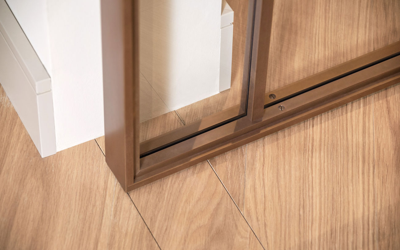 Unsere Türen kommen dank Bodenschließer ganz ohne störende Türzargen und Türbänder aus. Mit geregeltem Gegendruck schließt und öffnet die Messing-Tür in einstellbarer Geschwindigkeit – oder rastet bei 90° ein. Das sieht nicht nur schick aus – es sorgt auch für mehr Sicherheit und Komfort. Zusätzlich planen und konstruieren wir unsere Türen immer in symmetrischer Optik, d.h. in identischer Bauweise von beiden Seiten – für eine minimalistische Ansicht ohne Kompromisse.